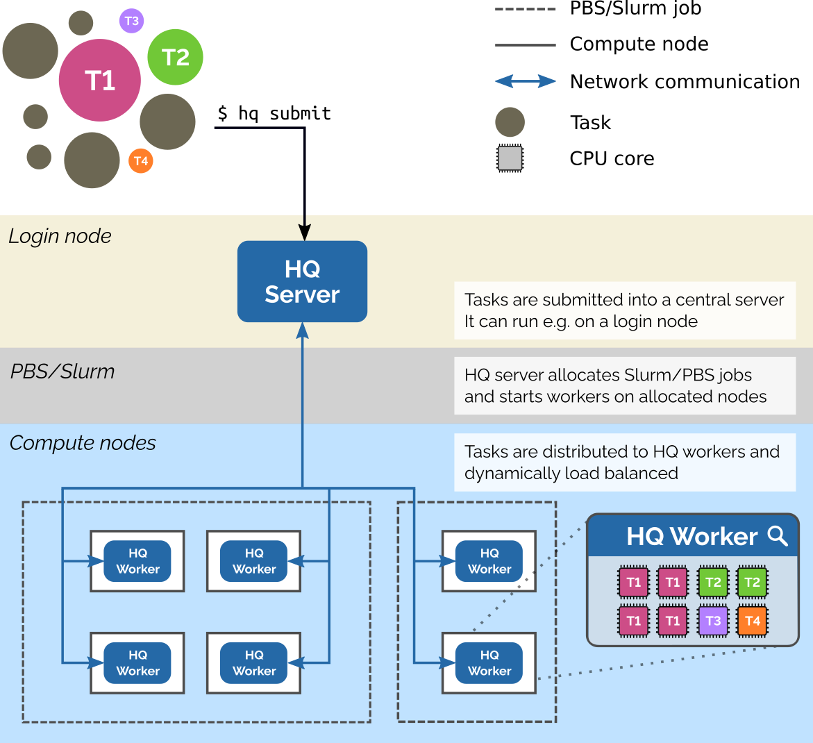 You can find more information about the architecture of HyperQueue here.
